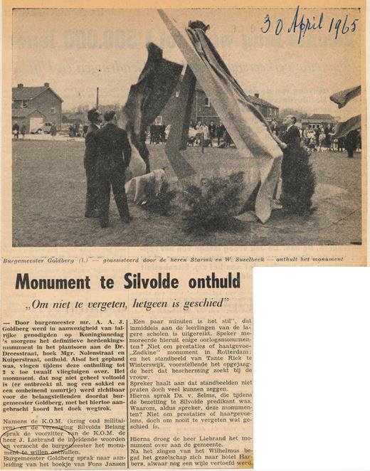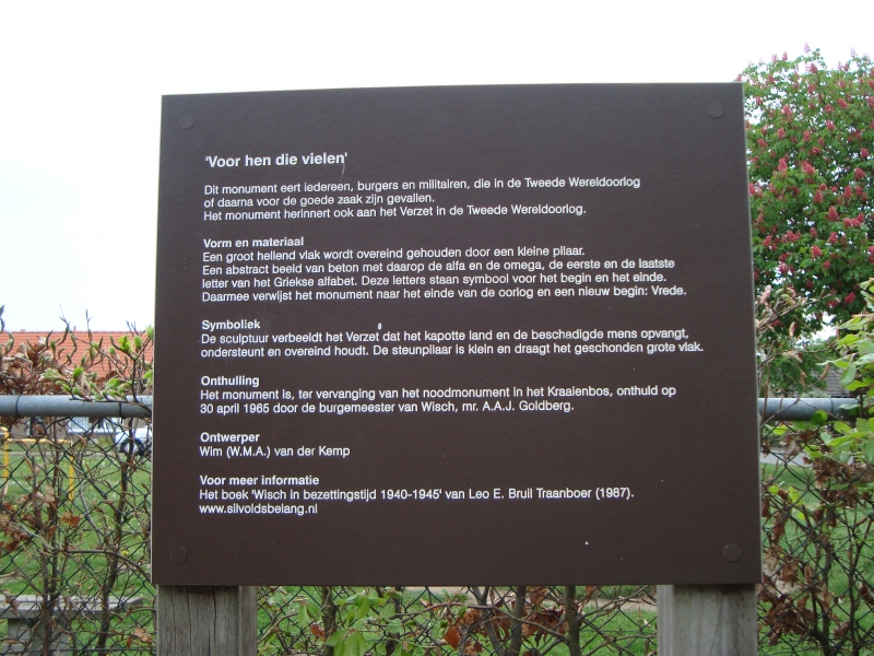 Het monument aan de Doctor Dreesstraat in Silvolde (gemeente Oude IJsselstreek) is een abstract beeld van beton, waarop een alfa en een omega zijn aangebracht. Een groot overhellend vlak wordt ondersteund door een kleinere pilaar. Het geheel is geplaatst op een plaveisel. Het gedenkteken is 3 meter hoog, 1 meter breed en 1 meter 50 diep.