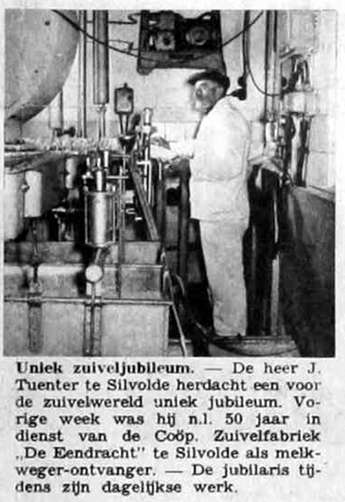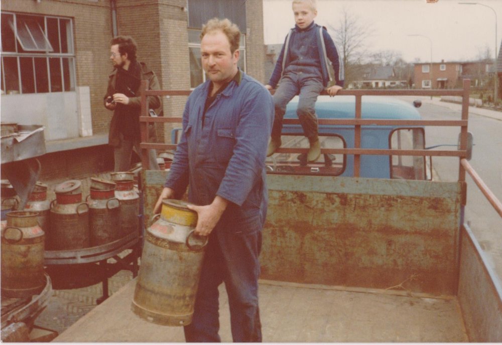"Deze foto toont de laatste dag dat in Silvolde de laatste melkrit was afgeleverd en zuivelfabriek "De Eendracht" in functie was. De deuren gingen op slot en uit de fabriek werden o.a. de melktanks, de leidingen, de centrifuges en de ketels door mijn vader als machinist-monteur maanden later nog afgebroken en naar andere fabrieken en naar Colmschate waar de centrale opslag was, gebracht. Eigenlijk een historische foto".