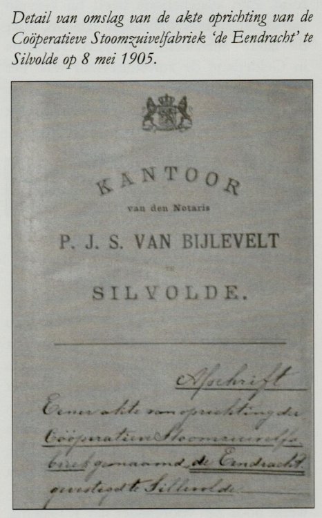 De omslag van de akte van oprichting van de Coöperatieve Stoomzuivelfabriek "de Eendracht" te Silvolde op 8 mei 1905.