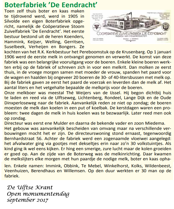 Zuivelfabriek “De Eendracht”te Silvolde werd gebouwd in 1905. De fabriek bleek al snel uit zijn jasje te groeien, zodat er enkele verbouwingen en verbeteringen plaatsvonden.