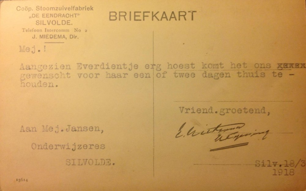 1918 de achterzijde van de bovenstaande ansichtkaart.