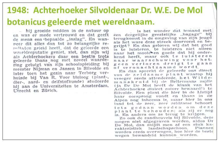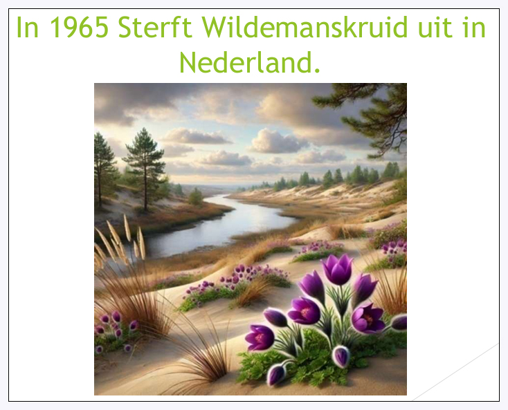 In Silvolde bevond zich ooit een prachtige anemonentuin naast de molen aan de Prins Bernhardstraat. Daar groeide onder andere Pulsatilla Vulgaris, een bloem die ook wel wildemanskruid genoemd wordt. Deze bloem was zeldzaam en speciaal, maar in 1965 werd het wildemanskruid voor het laatst waargenomen in het gebied van het Silvoldse rivierduin Kruusenberg, ook wel bekend als Anemonenkuil. Dit was tevens de laatste keer dat de soort in Nederland werd gezien.