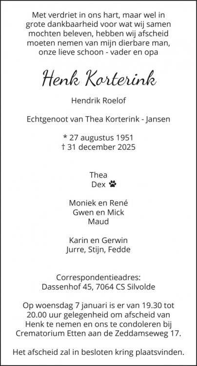 Henk Korterink is de kleinzoon van Hendrikus Korterink die machinist was op de tramlijn. Hij was o.a. machinist van de Silvolde 13.