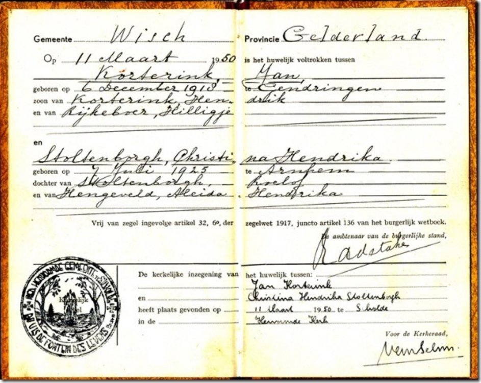Let op de stempel links onder in het boekje, deze is van de Protestante Gemeenschap in Silvolde. Het huwelijk werd ook kerkelijk ingezegend.