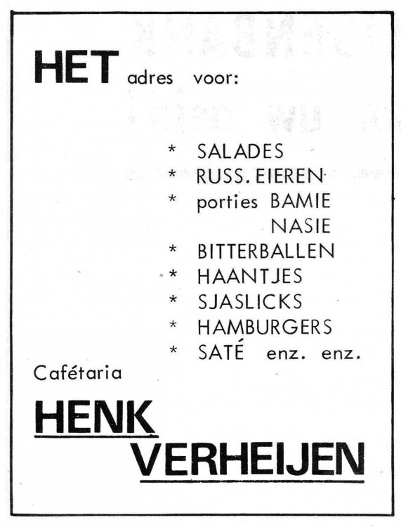 Uit eten gaan deden we in die tijd bij Dikke Joep aan de Markt, Willemien Wolters de uitbaatster van de cafetaria had dan een plaatsje voor onze familie achterin de zaak aan tafel en je kreeg de patat op een bordje.