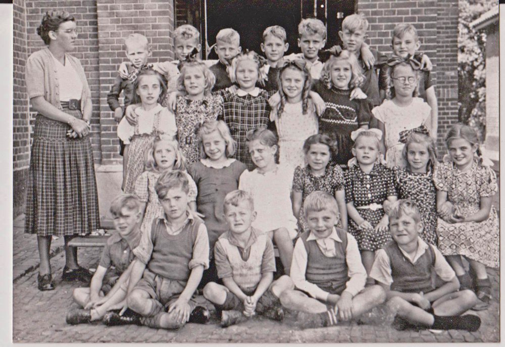Op de schoolfoto van O.L.S. De Drie Linden uit 1948 staan 2 zonen van het gezin Vermeer.