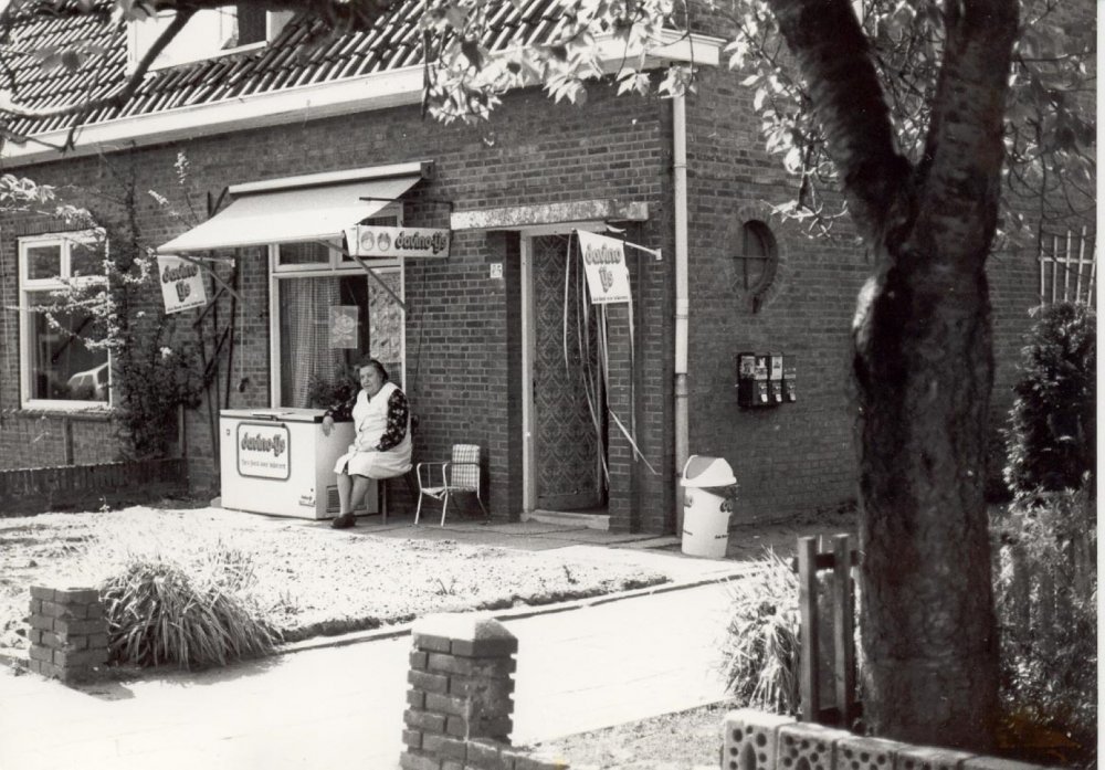 Anna Bannink verkocht ijsjes, let op de snoepautomaatjes rechts aan de woning.