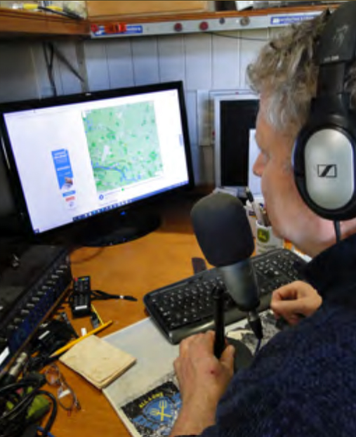 Het is op de radio begonnen bi-j Optimaal FM, dat vanuut één van de DRU-gebouwen in Ulf wödt uutgezonden. ‘Ik leverde vrogger regio - nale informatie an weerman Jan Versteegt en in 2003 vrog Alard Ross mien um een präötje aover het weer te hollen in zien programma op zaoterdagmargen.’ Gerrit hef de wind met en zien weerberichten zun now te heuren op vief radiostations in de umgeving. De 58-jorige Silvoldenaar hef nooit meteorologie gestu - deerd.