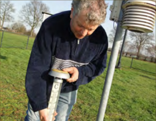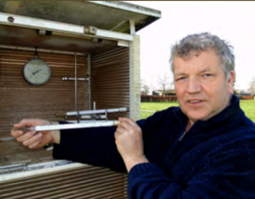 Ik zeg altied ik heb kötte nekspieren, want ik kiek heel vaak umhoog naor de luch. An het gedrag van de dieren – de vogels in de luch, de kippen um het huus – vilt völ af te laezen. Vliegt de zwaluw hoog dan blijft het droog.’ Gerrit onderhölt twee web - sites: Weerstation Lichtenberg (KLIK) en Me - teo Gelderland (KLIK) . Ok politicus en köster Vossers is boer, weerman, politicus en köster.