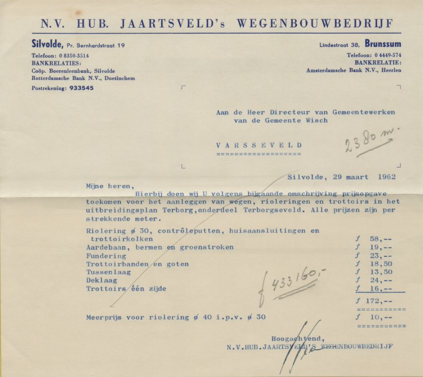 Oorspronkelijk een boerderij, maar omstreeks 1903 verbouwd/uitgebouwd tot woning en kantoor in opdracht van stratenmaker Hannes Jaartsveld. Het ontbrekende hoekje aan de rechterkant is het gevolg van een granaatinslag in WOII.