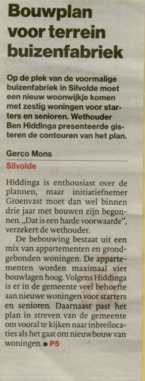 Het plan is met groot enthousiasme ontvangen door de gemeente en Silvolds Belang. De belangenvereniging uitte in de afgelopen jaren meerdere malen haar ongenoegen over het ontbreken van plannen voor woningbouw in het dorp en het plan van Beumer komt als geroepen. Op woensdagavond 22 januari 2020 houdt Silvolds Belang een voorlichtingsavond over het bouwproject in zaal 't Molentje.