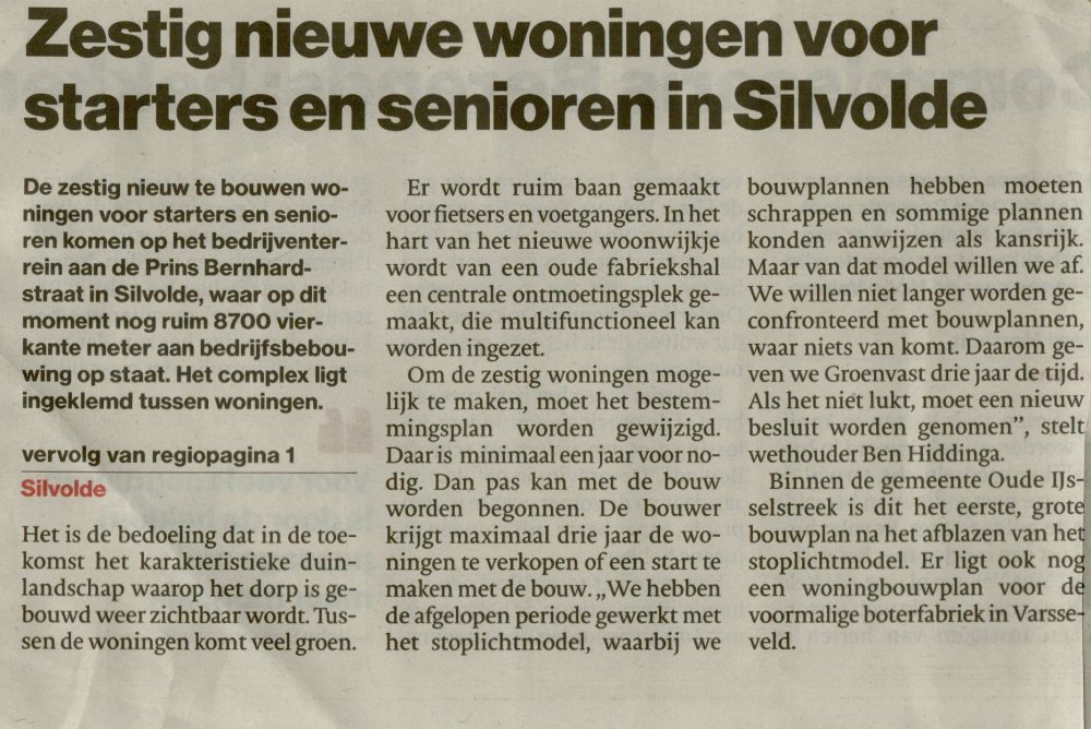 Stef Beumer benadrukt dat het Silvoldse plan een pilot is en een opmaat tot meer van dergelijke projecten in de Achterhoekse gemeenten. Momenteel wordt de laatste hand gelegd aan het plan en wordt er bijvoorbeeld een bodemonderzoek uitgevoerd. Er is al veel overleg met de gemeente geweest en Beumer denkt het definitieve plan in maart te kunnen voorleggen. Er volgt nog een wijziging van het bestemmingsplan voor het gebied. "Op zijn vroegst zouden we eind van het jaar met het bouwen kunnen starten."