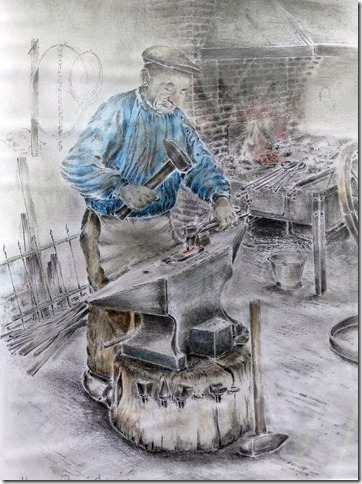 Ik bezocht Jan regelmatig tijdens het smeden, een smederij met hooi op de zolder!!!